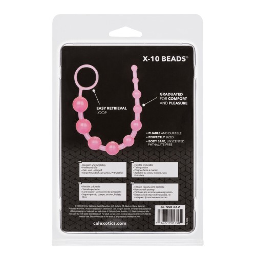 Crafted from unscented, phthalate-free PVC, the X-10 Beads have a smooth jelly finish and are strung on a flexible translucent cord. A sturdy retrieval ring ensures easy insertion and removal. For optimal comfort and heightened pleasure, always use a quality lubricant with this toy.