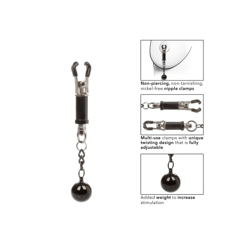 Experience the thrilling fusion of pleasure and pain with the Nipple Grips Weighted Twist Nipple Clamps. Whether you're a beginner or a seasoned player, these clamps are sure to add excitement and intensity to your intimate moments.