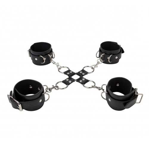 Unleash your fantasies with the Shots Ouch Leather Hand and Leg Cuffs, where durability meets elegance for a truly thrilling experience!