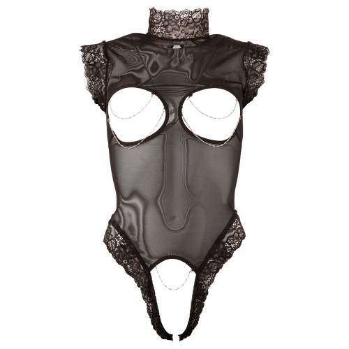 Embrace your bold side with the Cottelli Cupless and Crotchless Sheer Body, a provocative piece that embodies sensuality and empowerment. Crafted from sheer fabric, this bodysuit features an enticing cupless design that beautifully showcases your bust, while intricate lace trim on the arms and collar adds a touch of sophistication. With two buttons at the back and leg openings for easy wear, this bodysuit is as functional as it is alluring. The breast and crotch areas are decorated with a removable chain, enhancing the playfulness and inviting intimacy.