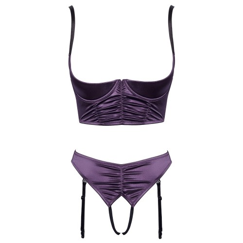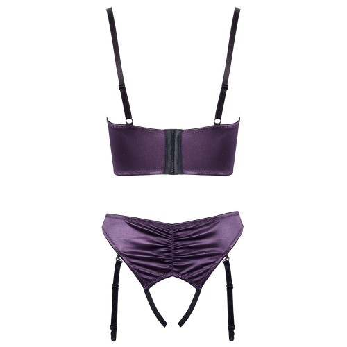 - Set includes a quarter cup bra and crotchless suspender thong.