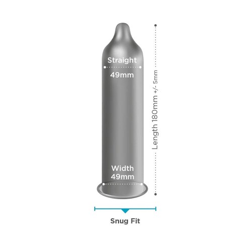For a tighter, more secure fit, choose EXS Snug Closer Fitting Condoms. Designed to provide a snugger fit with a width of 49mm, these condoms feature a straight wall and a teat end for enhanced comfort and reliability.