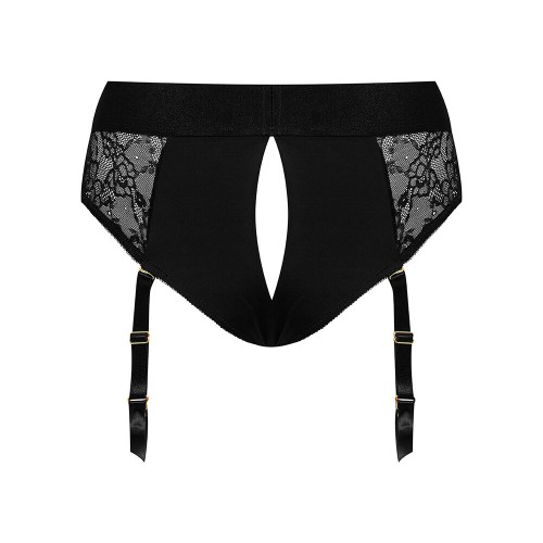This lace harness exudes elegance and comfort with its second-skin design. Featuring an elastic waistband and adjustable garter belts, it provides a custom fit for maximum comfort. The back opening accentuates your buttocks for an ultra-sexy look.